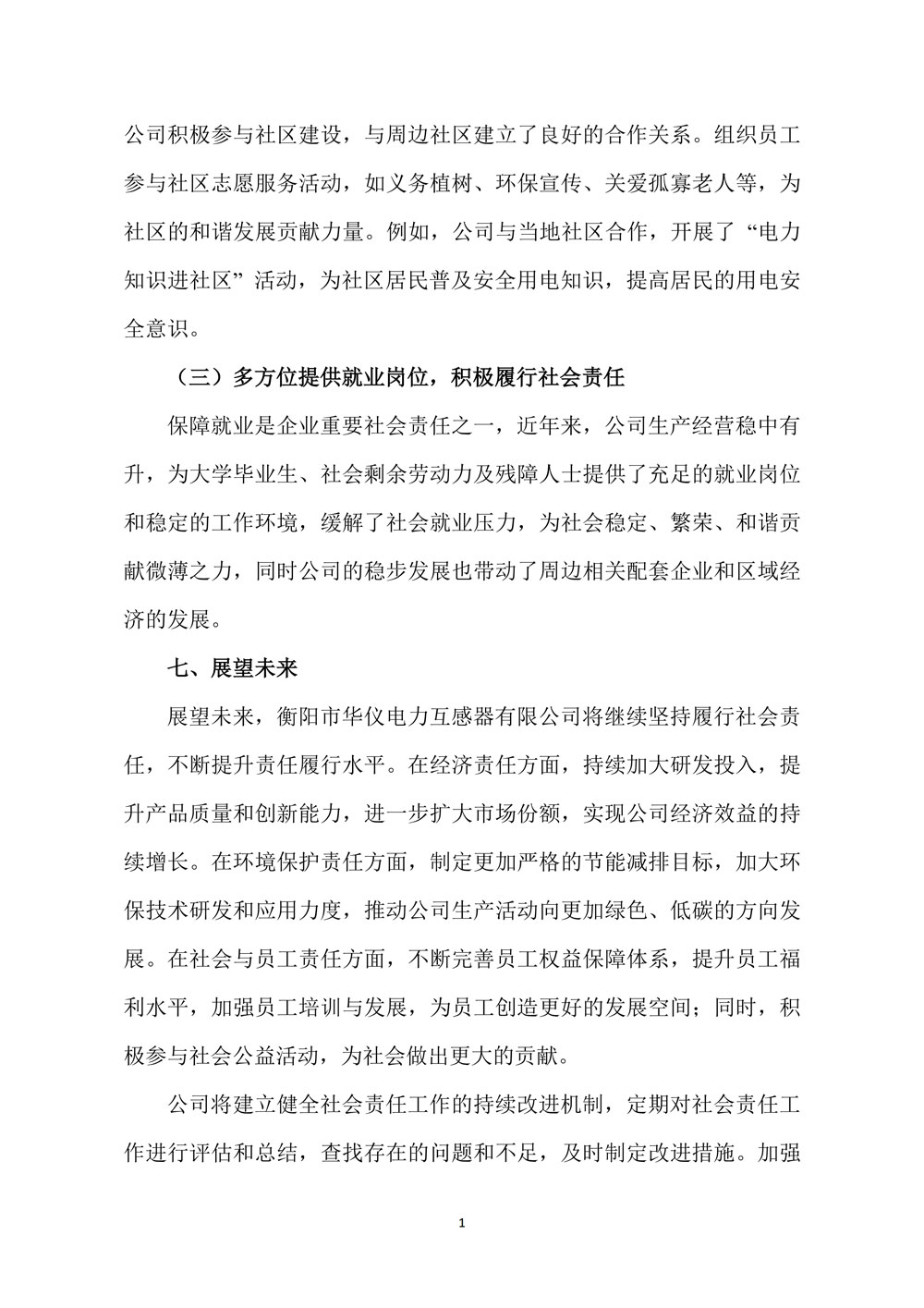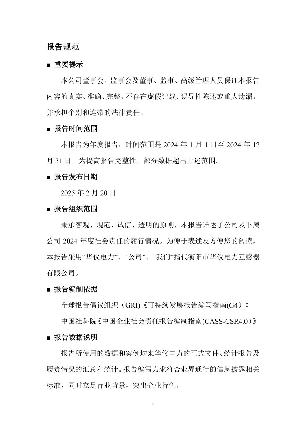 衡陽市華儀電力互感器有限公司2024年度企業(yè)社會責(zé)任報告